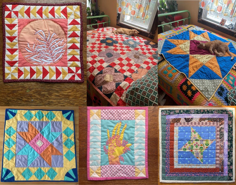 i finished over 10 quilts of varying sizes in 2025! holy shit! i think at the beginning of the year i said to myself, “i want to start calling myself a quilter, rather than saying i am someone who quilts”. i guess i nailed it. a few highlights, which are not featured in that photo above: